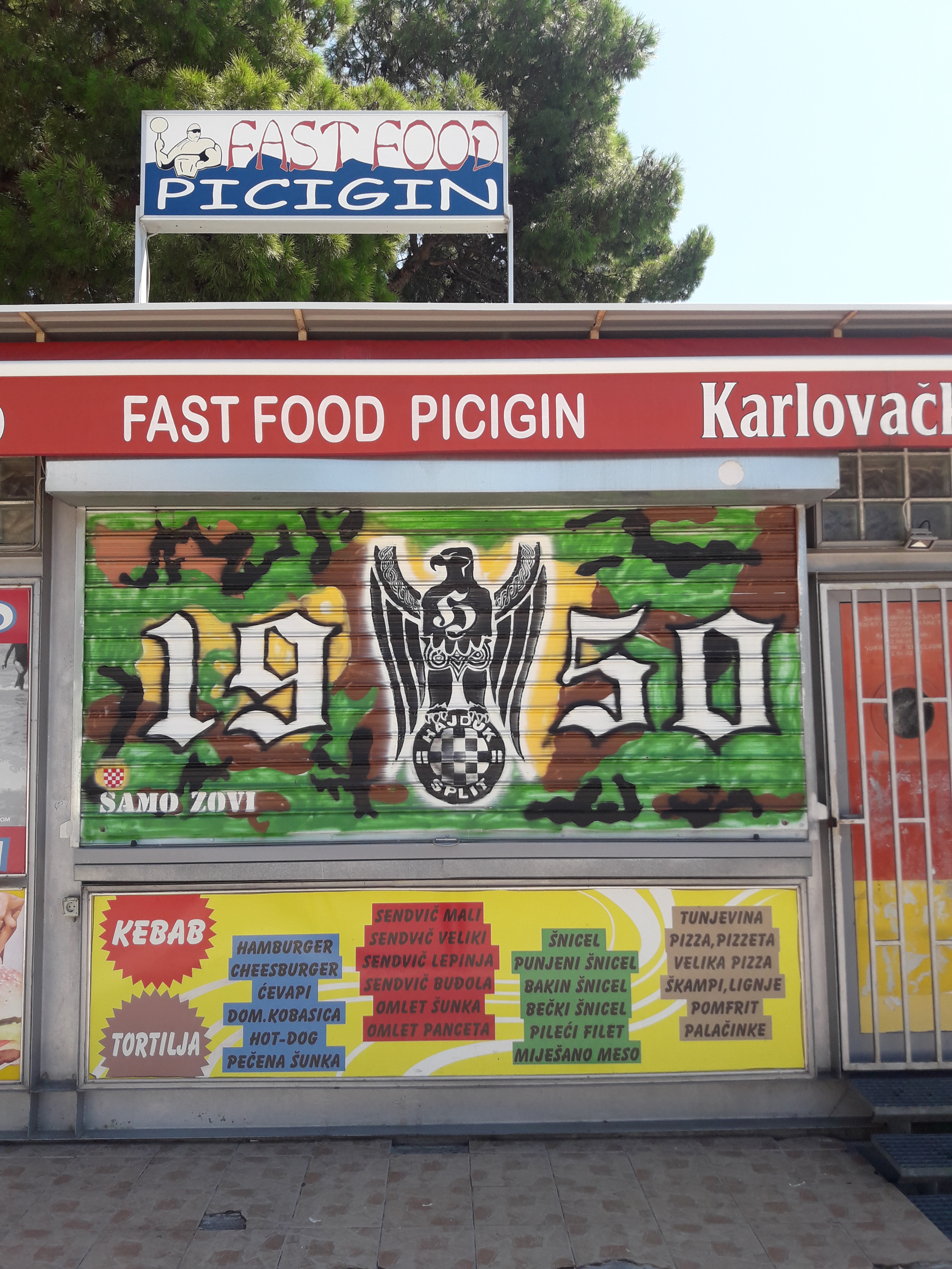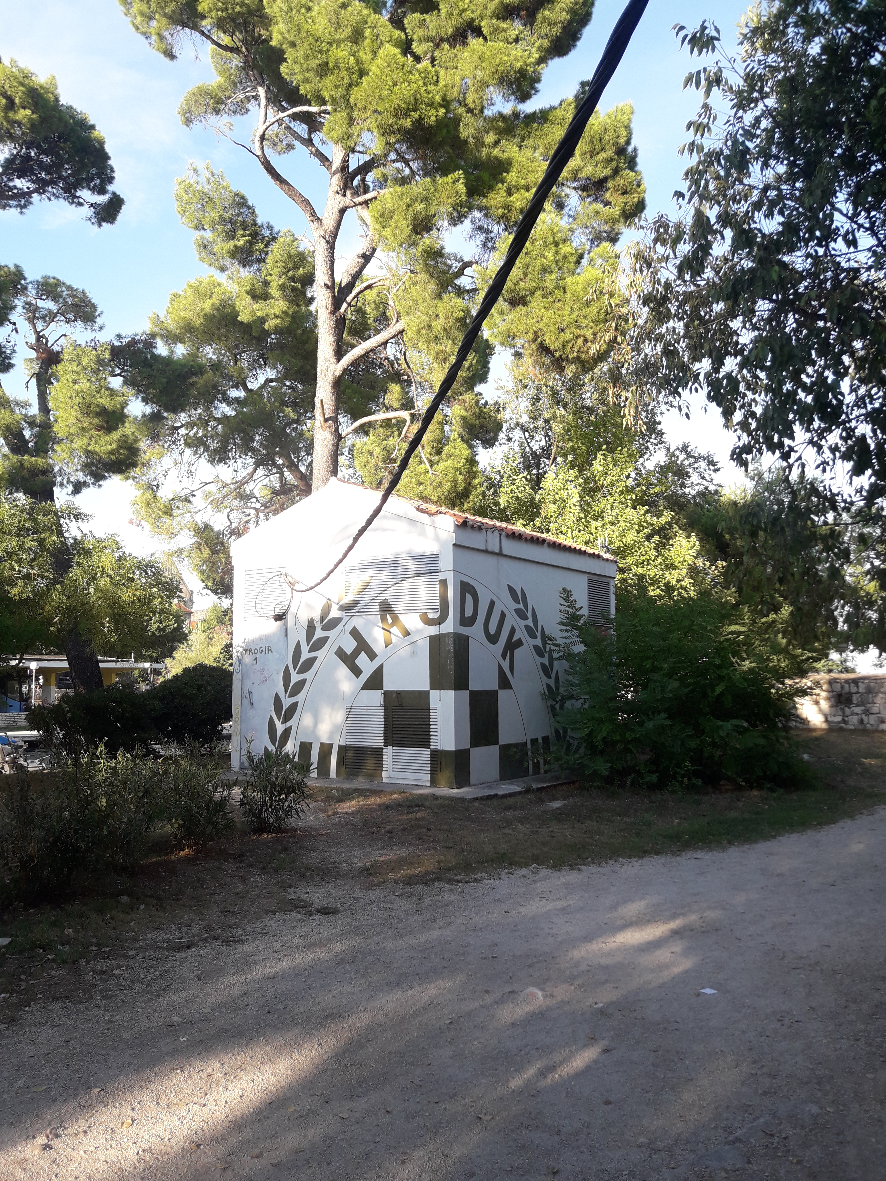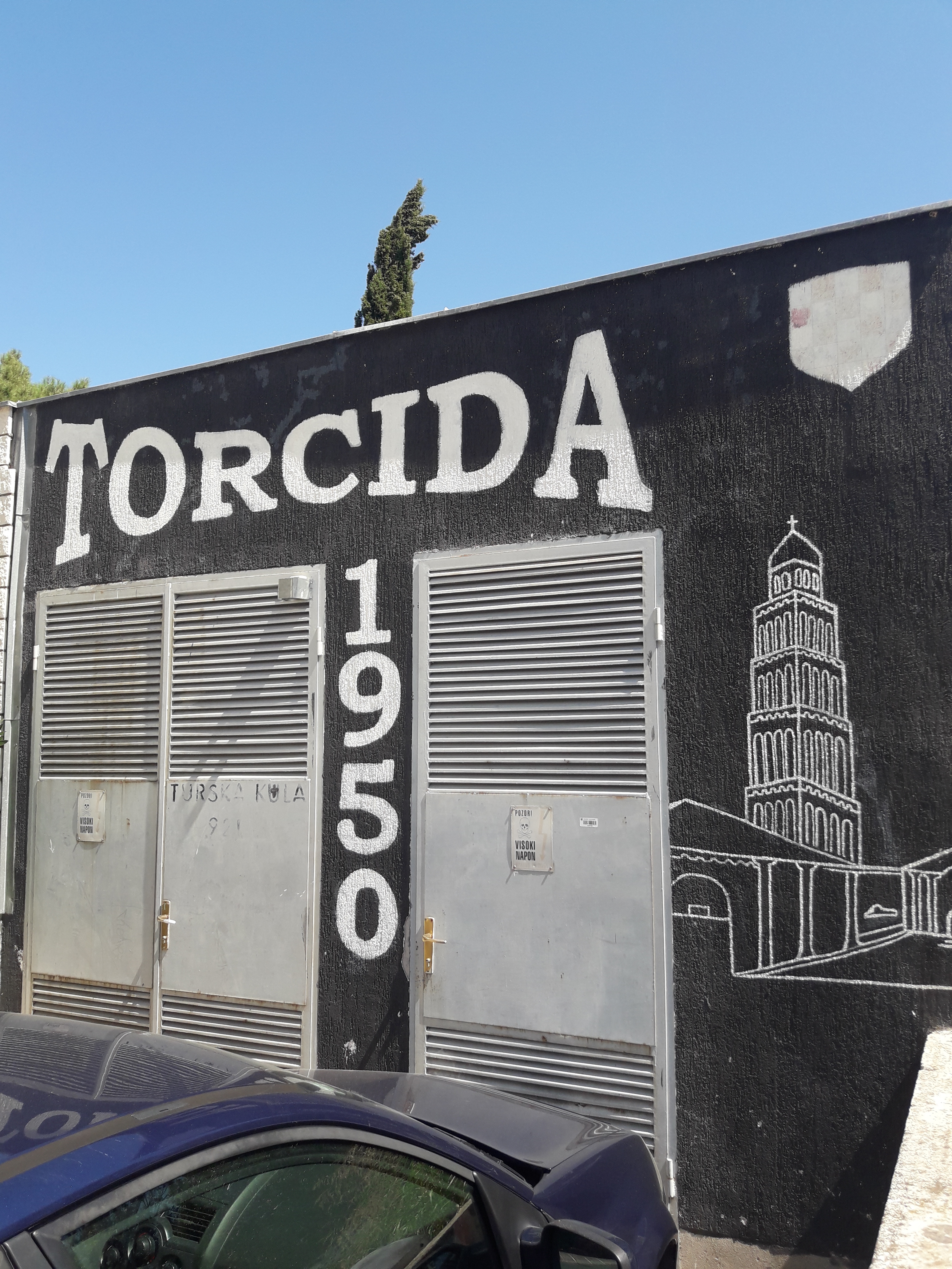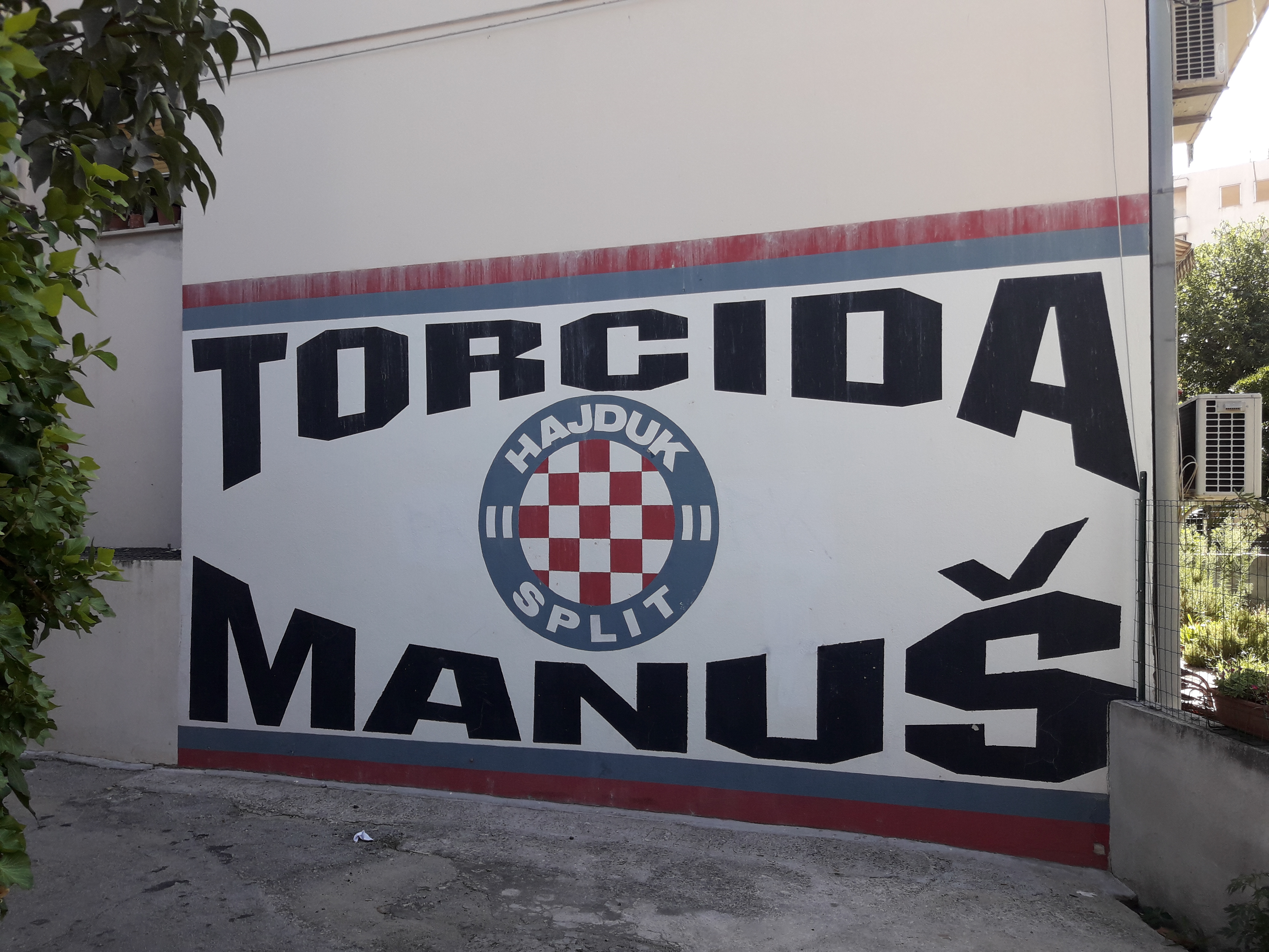 В плане граффити в Сплите посмотреть однозначно есть на что! Город, пригороды, окрестности и соседние города просто утопают в разных рисунках. Тут и небольшие трафареты, и длинные куски вдоль дорог, и простенькие эмблемы клуба на гаражах и сложно выполненные портреты игроков и фанатов, на трассе от аэропорта и в самом историческом центре. Радует, что откровенных каляк нету, все работы выполнены аккуратно и чётко.