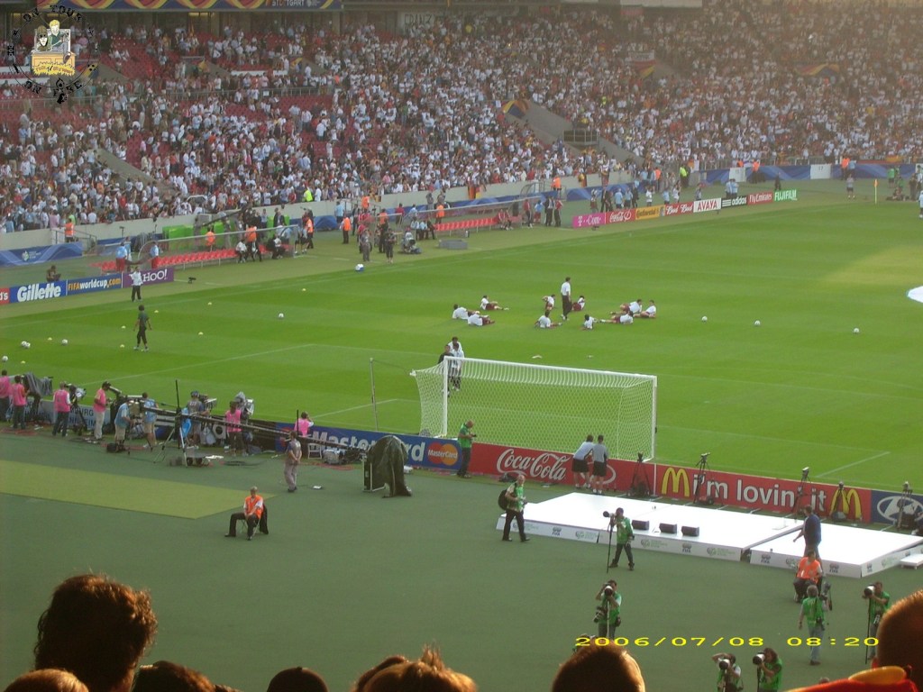 Але Німеччина заслужено перемагає і забирає бронзу Чемпіонату Світу 2006. Всі задоволені і дуже п’яні. Дзвін у вухах стояв ще багато годин. Перед нами була довга дорога додому, під час якої меня запамїятались дві сцени. В електричці один дядько прощався зі всіма, хто виходив і на прощання додавав “до наступного чемпіонту світу”. А на одному світлофорі п’яні і дуже веселі люди кидалися на на червоному на машини і розгойдували їх. Точно не пам’ятаю, але наче все відбувалось без агресії, чисто по фану, як зараз модно казати.